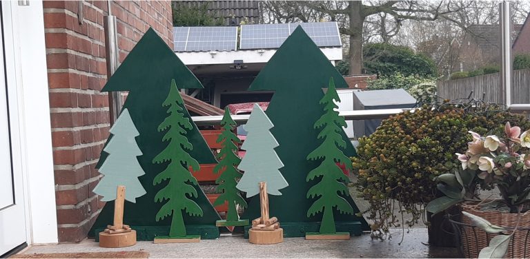 Unsere diesjährige Weihnachtsbeleuchtung soll um zwei 70 cm große XMAs-Trees erweitert werden. Der Wunsch war, dass sie selbst hergestellt und aus altem Holz bestehen sollten. Schnell fand ich im Keller
