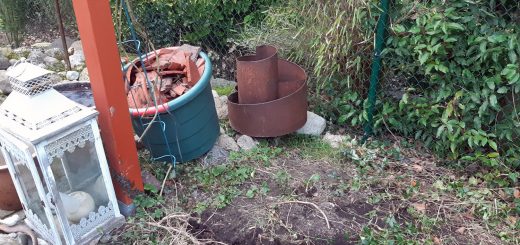 Zwei Glasplatten waren defekt und mussten erneuert werden. Da das Sicherheitsglas schwer ist, habe ich mir Hilfe geholt. Gleichzeitig mussten neue Bleche her, da unter der Dachrinne bei starkem Wind der Regen herunter prasselte. An der Schlagseite war der Dachüberstand offen und auch da gab es recht häufig Regenwasser. Nun werde ich das zu machen.