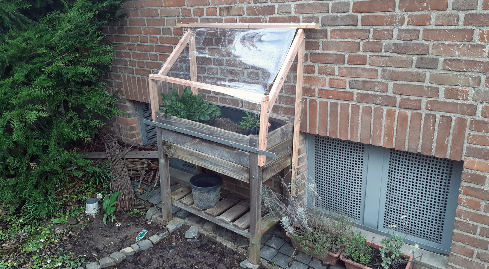 2026 • Aktion „Hochbeete Abdeckung“ Das neue Hochbeet soll noch eine Abdeckung bekommen.Da habe ich mir eine flexible Konstruktion ausgedacht und umgesetzt. Na ja, die Ausführung hätte ein wenig besser gemacht werden. Aber ich habe es selber gemacht, also prima.