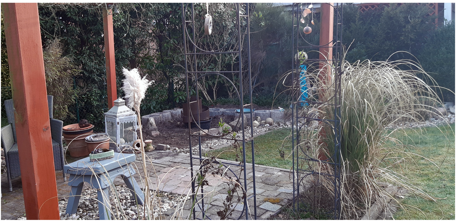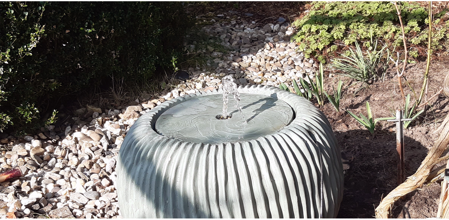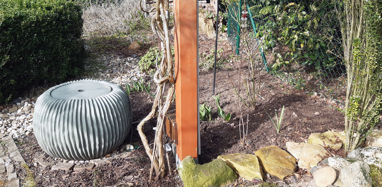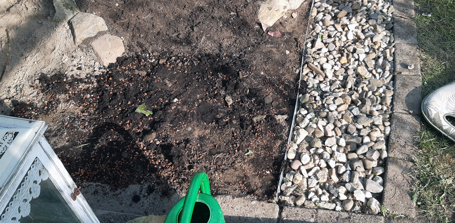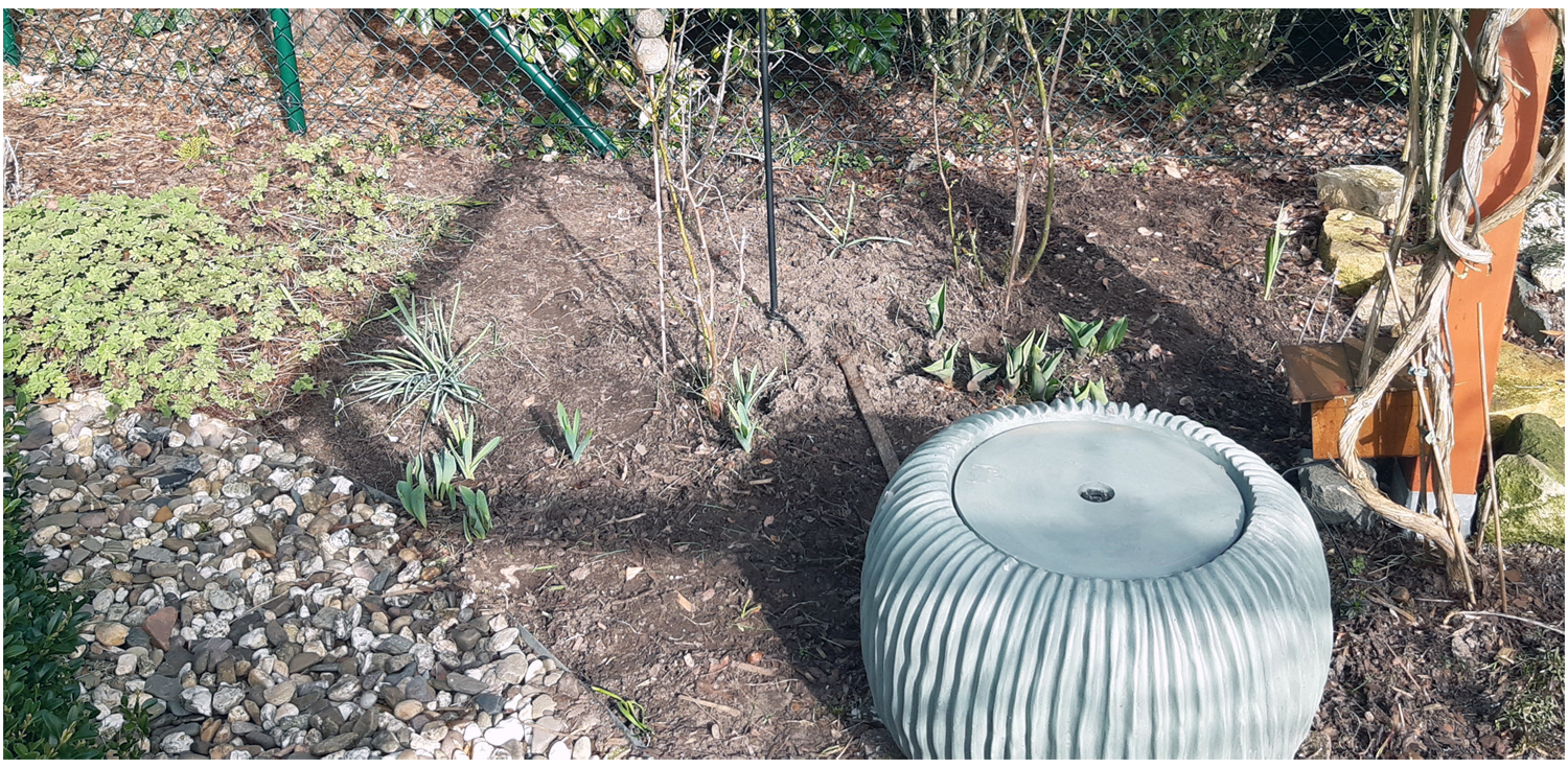 Gleichzeitig habe ich das angrenzende Beet sauber gemacht und den neuen Brunnen in Waage gebracht.