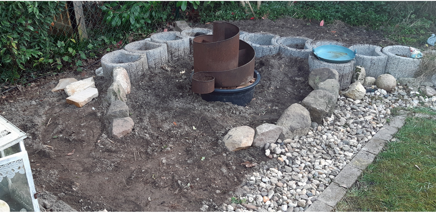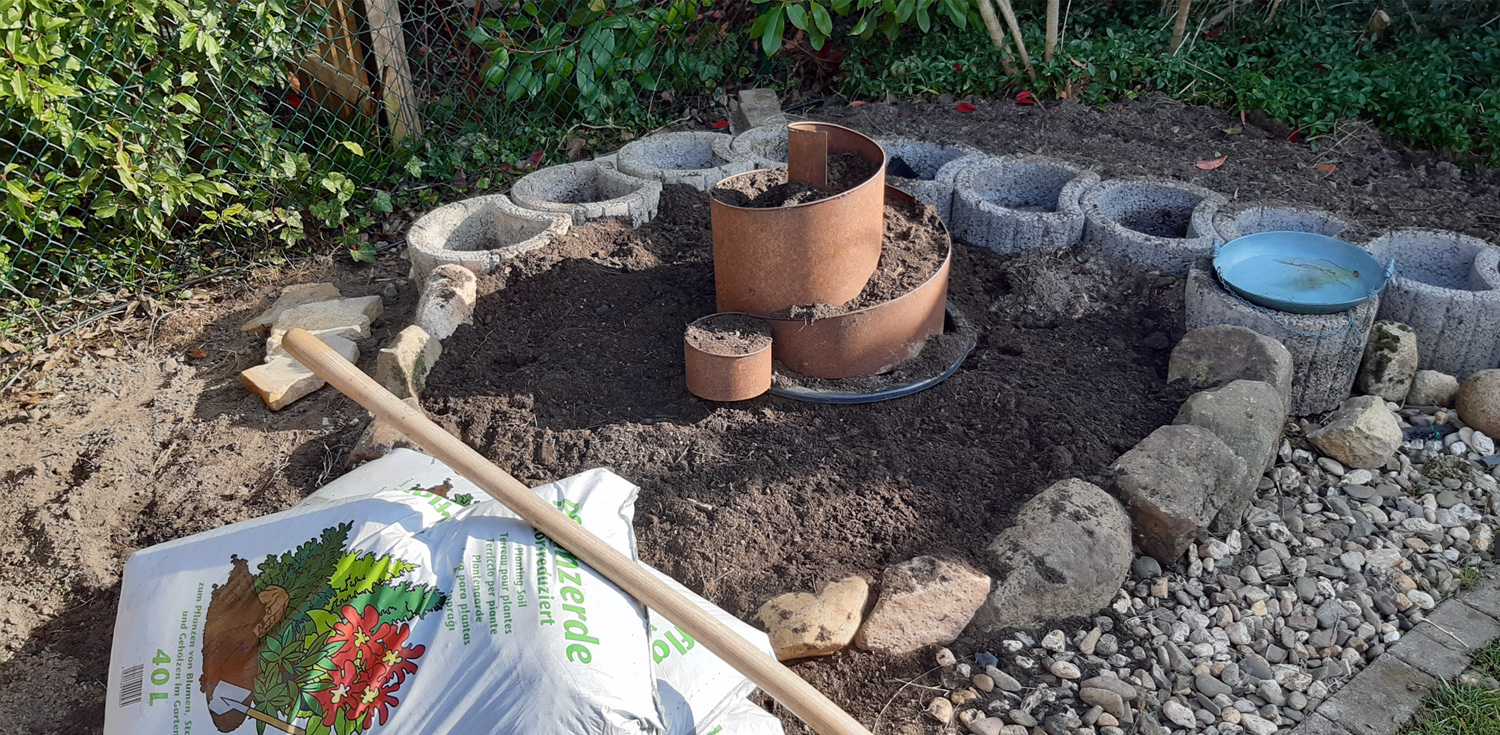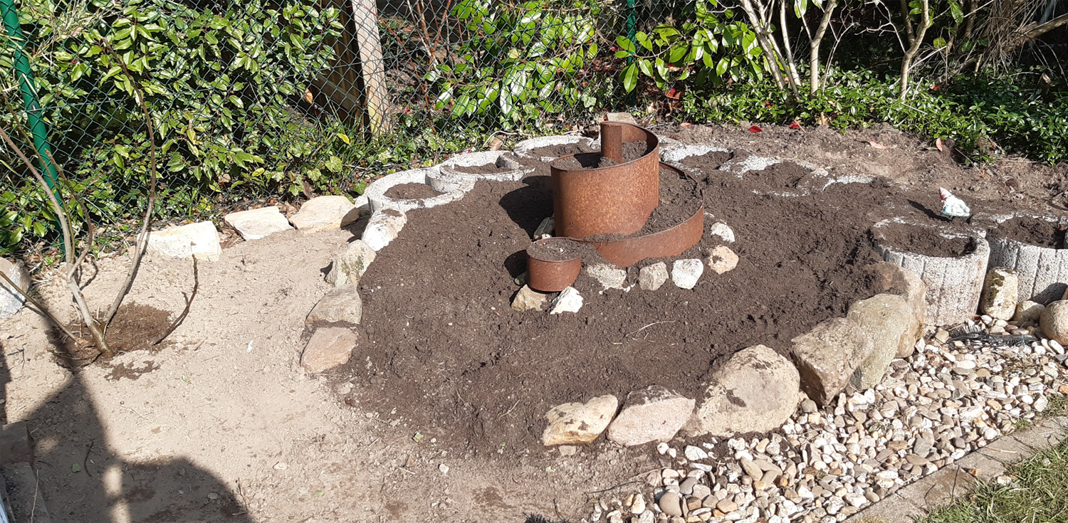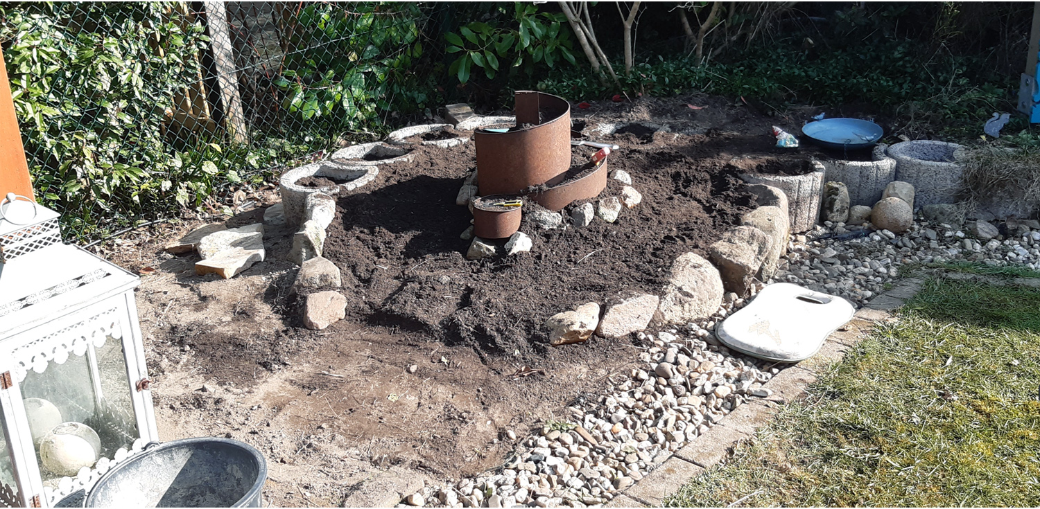 Danach unsere Feige aus dem Vorgarten umgepflanzt. So jetzt können die Kräuter in die Kräuterspirale.