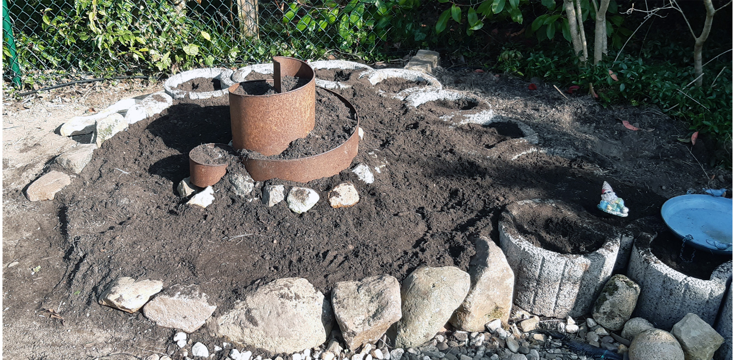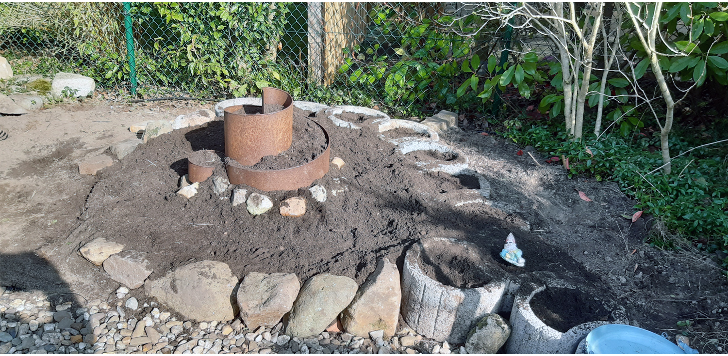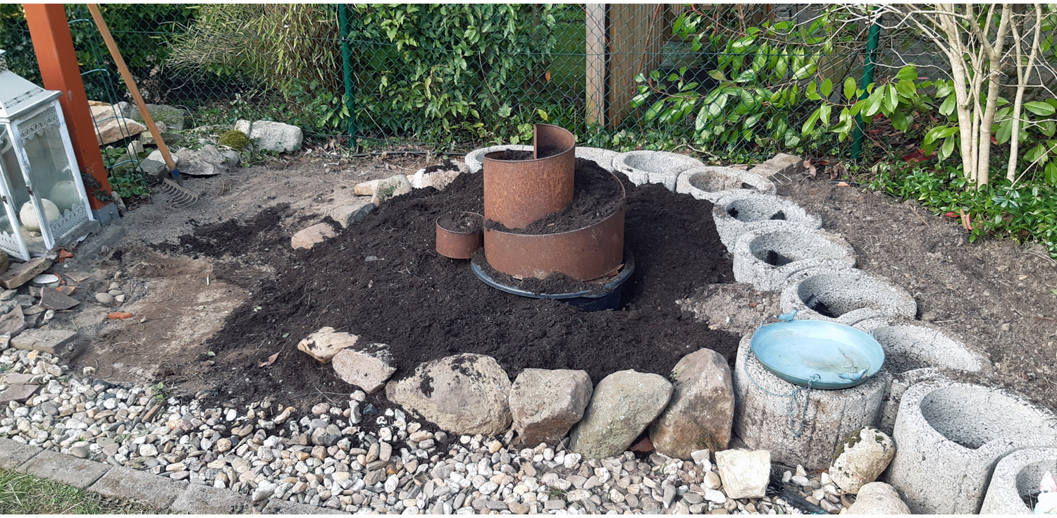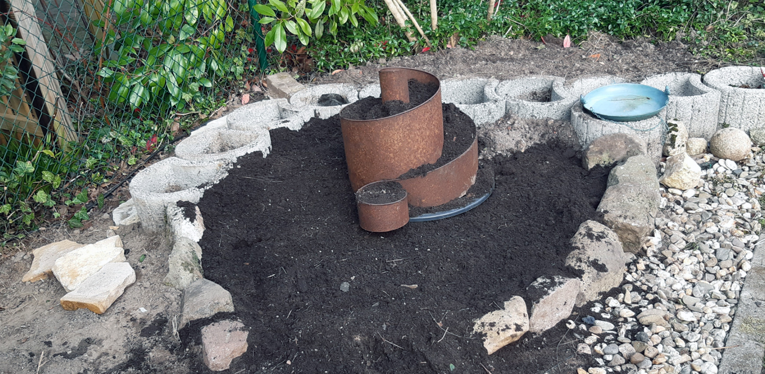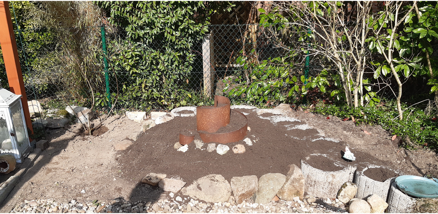 Danach unsere Feige aus dem Vorgarten umgepflanzt. So jetzt können die Kräuter in die Kräuterspirale.
